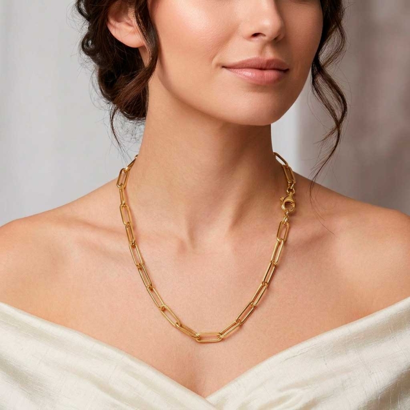 Gargantilla con colgante en forma de cubo y cadena de roló con posibilidad de poner en dos medidas. Oro amarillo de 18 ct.