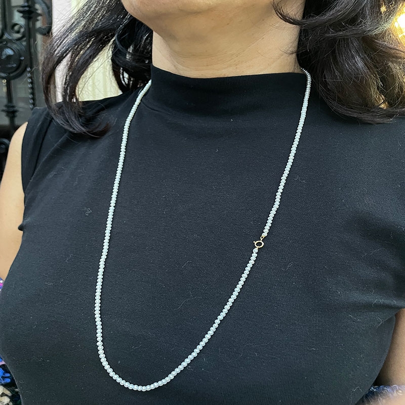 Collar de perlas blancas cultivadas con forma redonda de 5,5 mm y cierre de rombo en oro amarillo y blanco de primera ley