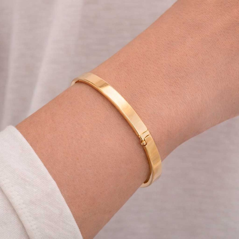 Pulsera articulada con cadenita eslabones planos ovalados. Oro amarillo de 18 ct