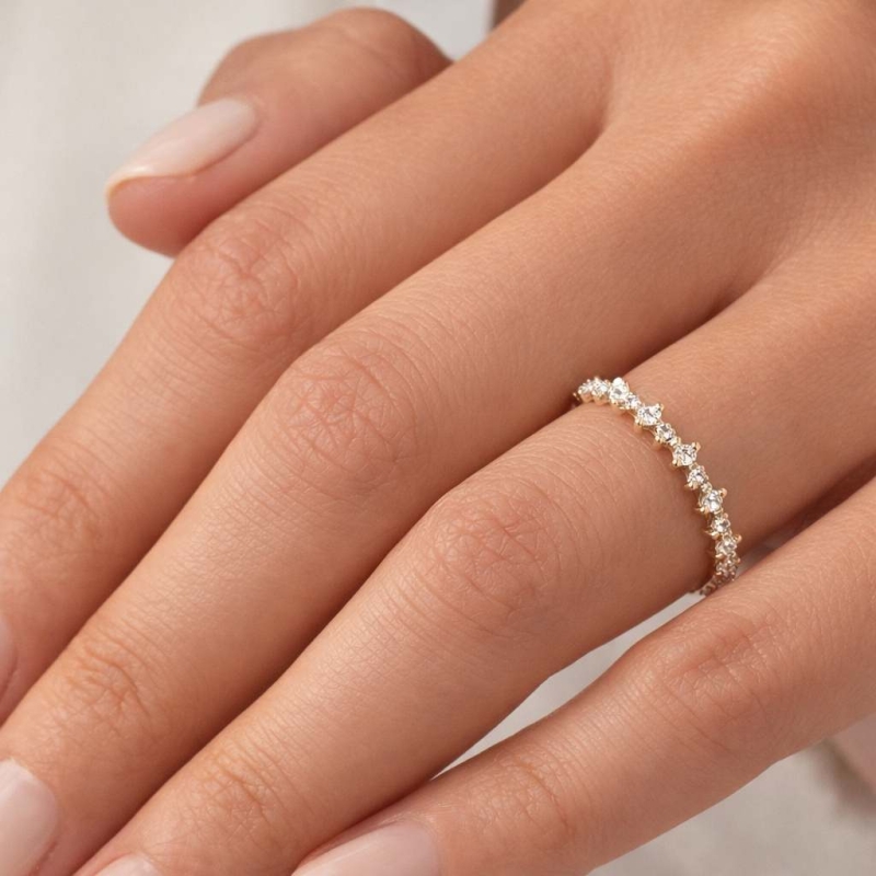 Sortija media alianza en oro blanco de 18 ct con circonitas talla princesa engastadas en carril